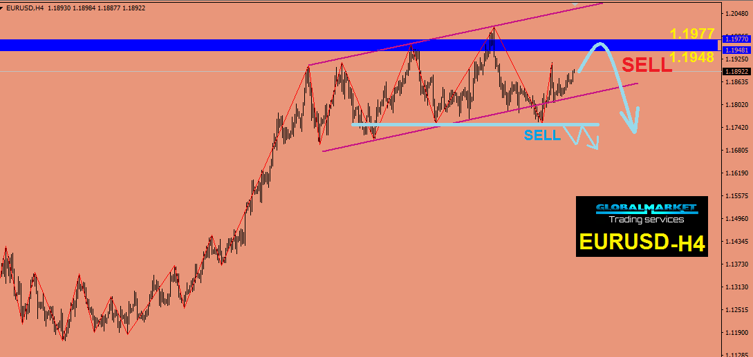 اليورودولار وتصحيح ايجابى طفيف البيع من 1.1945 - 1.1975 والأستوب اعلى اخر قمة ويمكن الدخول بيع بعد كسر اخر قاع على H4