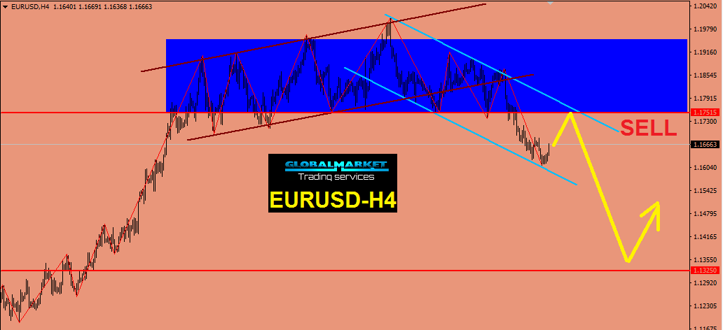 اليورو دولار ارتد من حافة الترند السفلى للقناة الهابطة ويتأهب الأن للتصحيح حتى مستوى 1.1750 ومن ثم معاودة الهبوط مرة اخرى . الزوج للهبوط ما دامت الأسعار داخل القناة الهابطة على فريم h4 كما هو موضح بالرسم البيانى اعلاة .