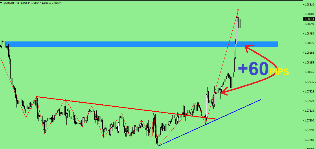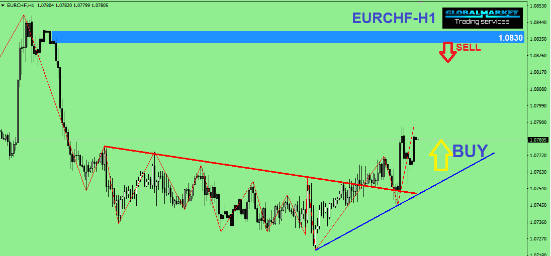 اليورو فرنك يتداول على فريم H1 اعلى ترند صاعد مكسور ودعم من ترند صاعد مشكلان معا دعم قوى للزوج سيدفعة حتما الى مستوى 1.0830 وهو مستوى المقاومة التالية . ننصح التجار بالدخول ماركت بسعر السوق صفقات شرائية واى هبوط للاسعار يمكن الشراء مرة اخرى من اسعار افضل والهدف مستوى 1.0830 - مع الحفاظ على وقف خسارة مناسب اسفل اخر قاع على فريم الساعة .