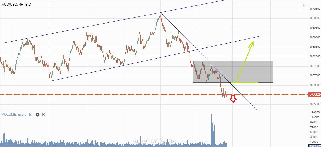 بشكل عام اتجاة زوج الاسترالى دولار هابط ما دامت الاسعار اسفل الترند على H4
