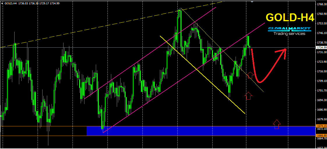 يتداول المعدن الأصفر فى اتجاة صاعد رئيسى بشكل عام . ولكن اختبر السعر القناة الصاعدو المكسورة سلفا ليرتد هبوطا . ونتوقع استمرار التصحيح حتى اختبار القناة الهابطة الثانية فى مستوى 1700 تقريبا وما حولها . ومن ثم العودة مجددا لأستئناف الأتجاة الصاعد .