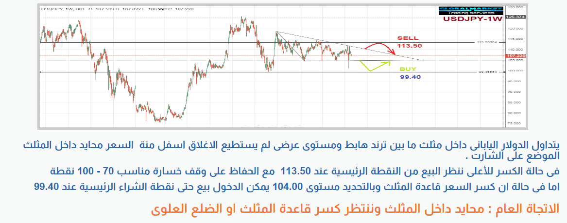 التحليل الفنى الأسبوعى للدولار اليابانى USD-JPY