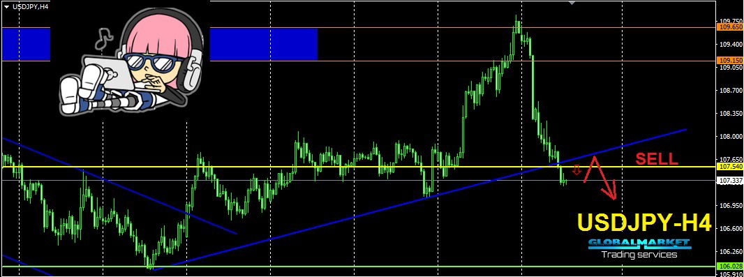 يتداول زوج الدولار اليابانى على شارت H4 اسفل ترند صاعد مكسور وهو بصدد اختبار الترند والذى يمثل مقاومة هامة الان للسعر ومن ثم الهبوط وصولا لمستويات 106.00 . ننصح التجار بدخول صفقات البيع اسفل مستوى 107.50 مع الحفاظ على وقف خسارة مناسب والهدف النهائى 106.00