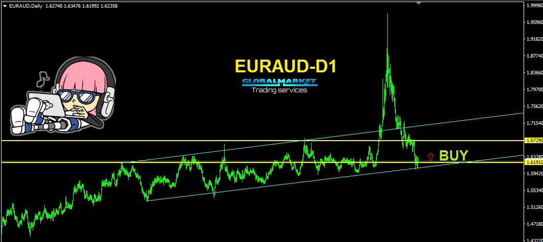 يتداول زوج اليورو استرالى على شارت الديلى D1 - فى قناة تميل الى الصعود منذ شهور عدة وتمثل هذة القناة نطاق المحدد للسعر فهو يتداول داخلها ذهابا وايابا بأستثناء فترة واحدة . ولكن يحافظ الزوج الى الان على الضلع السفلى للقناة والذى يمثل لة الدعم الهام جدا . ننصح التجار بدخول صفات شرائية متوسطة الأمد من مستوى 1.6190 وما حولة والهدف 500 نقطة مع الحفاظ على وقف خسارة مناسب اسفل الضلع الصاعد