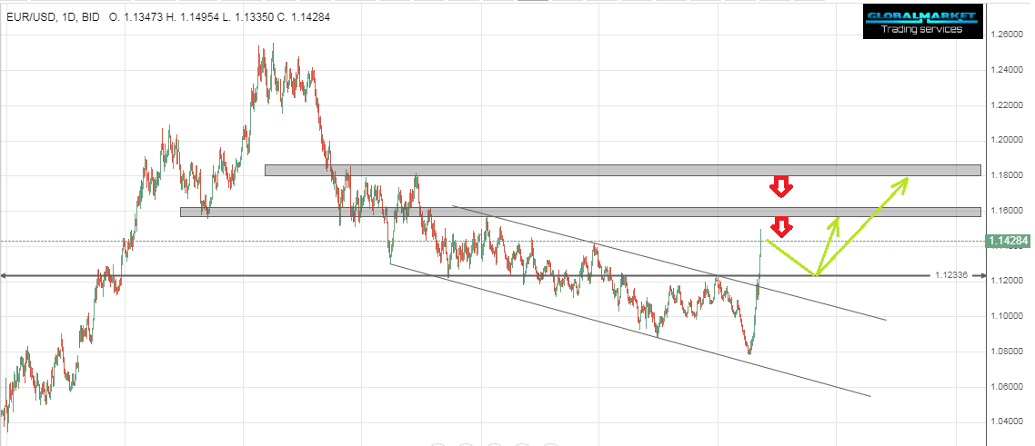 اليورو دولار كسر القناة الهابطة على الشارت الديلى , ننتطر اعادة الاختبار عند 1.2130 ومن ثم الشراء والهدف الاول 1.1570 والهدف الثانى 1.1810 مع الحفاظ على الاستوب 1.1100
