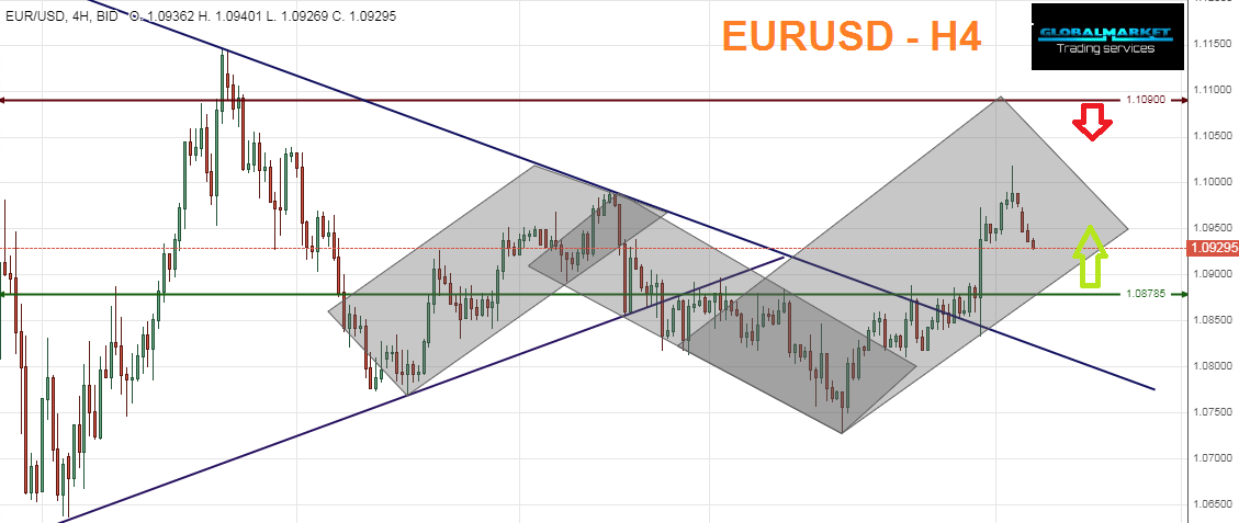 فى حالة صعود السعر للاعلى فأنة سيواجة مستوى 1.1090 وهو مستوى قوى ويمثل انتهاء الموجة الثالثة على h4 مع مقاومة ديلى مما نتوقع هبوط الاسعار من هذة النقطة مع الحفاظ على مستوى وقف خسارة مناسب اعلى القمة السابقة