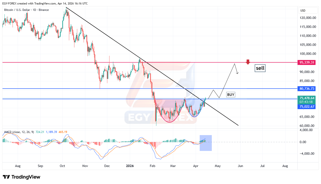 في حال اختراق منطقة 75,000 – 76,000➡️ قد يستهدف السعر: