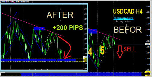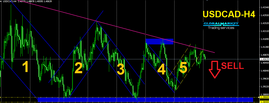 يتداول زوج الدولار الكندى تحت ضغط سلبى . حيث ارتد هبوطا على فريم H4 من الترند الهابط الرئيسى كاسرا القناة الصاعدة الفرعية رقم (5) , الزوج الأن فى اتجاة هابط اسفل الترند الرئيسى وننصح التجار بأتخاذ صفقات البيع فقط اسفل الترند مع الحفاظ على وقف خسارة مناسب اعلى الترند .