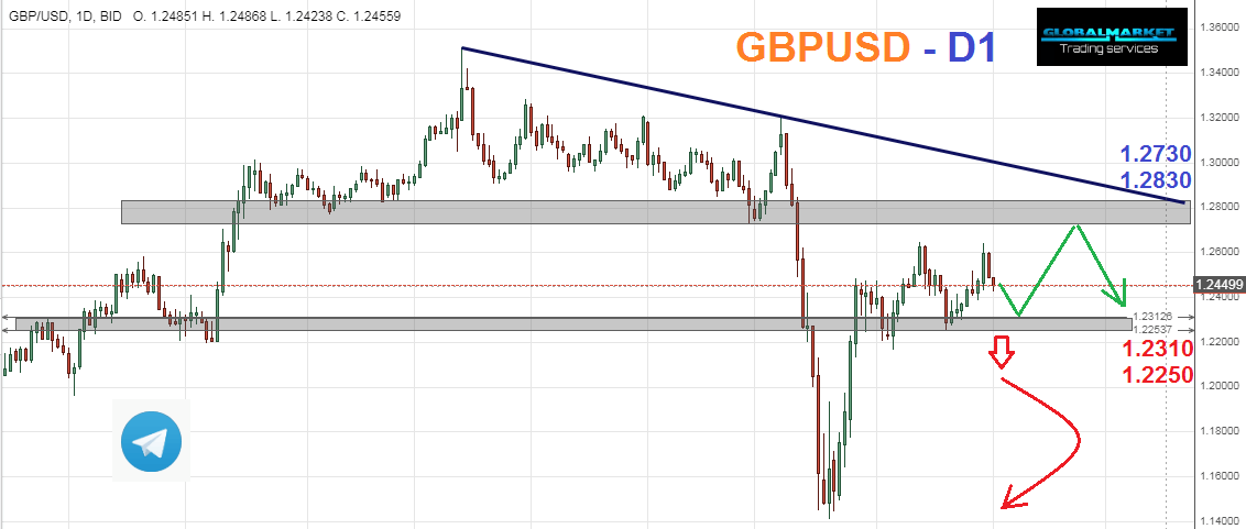 The GBP pair opened trading this morning at 1.2840, and the price is still below the downtrend on the H4 chart, which is confined between two demand and supply regions. 1- Any break of the demand or supply areas up or down will be the next destination for the husband in the direction of break in the medium term 2- Buying from the demand area from 1.2310 - 1.2250 levels while maintaining an appropriate loss stop and please run profit tracking 3- Selling from 1.2830 - 1.2730 levels It is a strong cross level on the daily in conjunction with the major downtrend on the daily chart