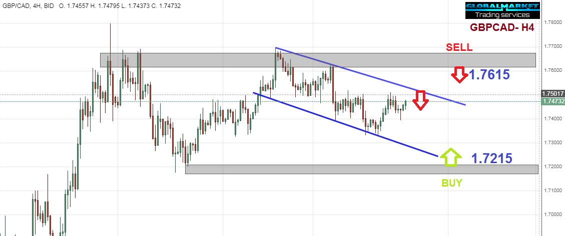 The Canadian Pound, GBPCAD, is trading on the H4 chart within a falling channel, as shown in the diagram above. You can enter the sale of a market directly as long as the prices are inside the channel and below the upper side of the descending channel. We recommend entering selling a pending order 1.7530