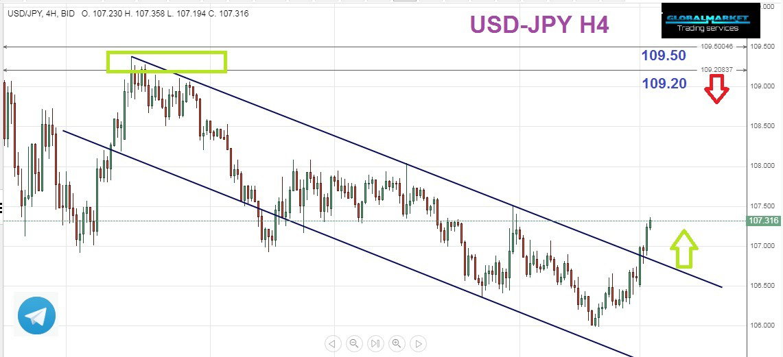 The pair is now trading outside the falling channel on the 4 hour chart, after it succeeded in breaking the channel with a strong positive momentum, through which it managed to break and close above the channel on H4. After this break, the outlook is completely positive for the pair targeting the highest levels 109.20 - 109.50 as recent high targets. We expect the price to resume again to test the broken downtrend and gather the price for a new positive momentum, and then rise to the top targets during the week.