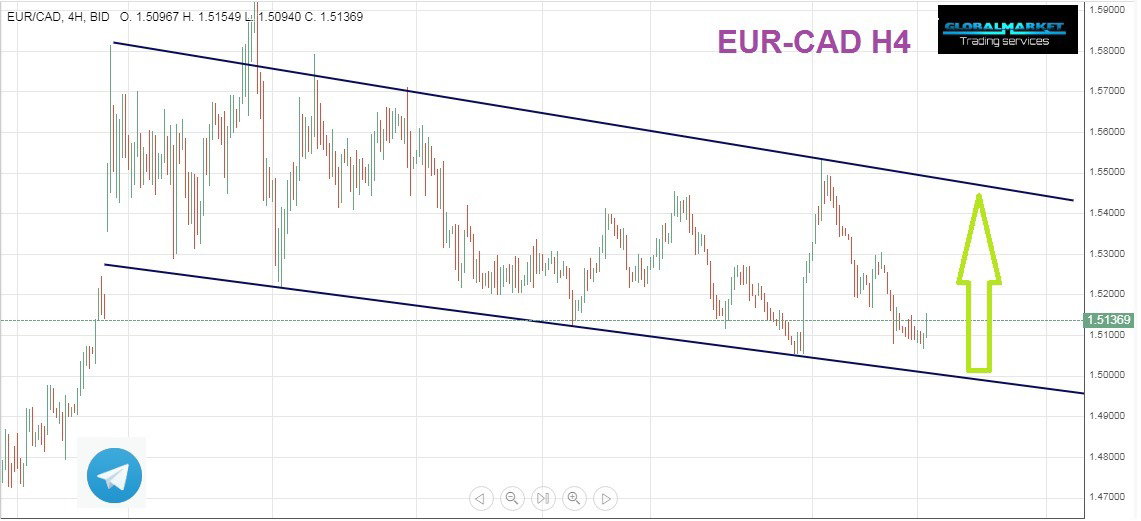 We expect the price to rise again to visit the upper side of the channel while maintaining the stop loss outside the channel for both directions. As shown above, it is possible to enter long positions on the Canadian euro pair with the appropriate stop loss below the last low on the 4 hour chart.