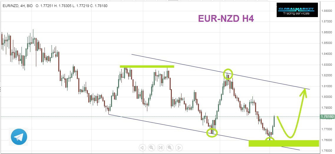 The Euro New Zealand pair is trading in a cross zone forming a channel that tends to fall on H4. As we can see in the above chart, the price has started to go higher from the channel's lower side. Expect the correction a little and then return to rise again to target the downside leg.
