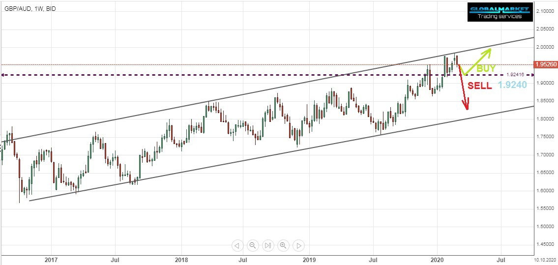 The Australian pound is trading in an ascending channel on the weekly chart and touching the upper side of the ascending channel last week.