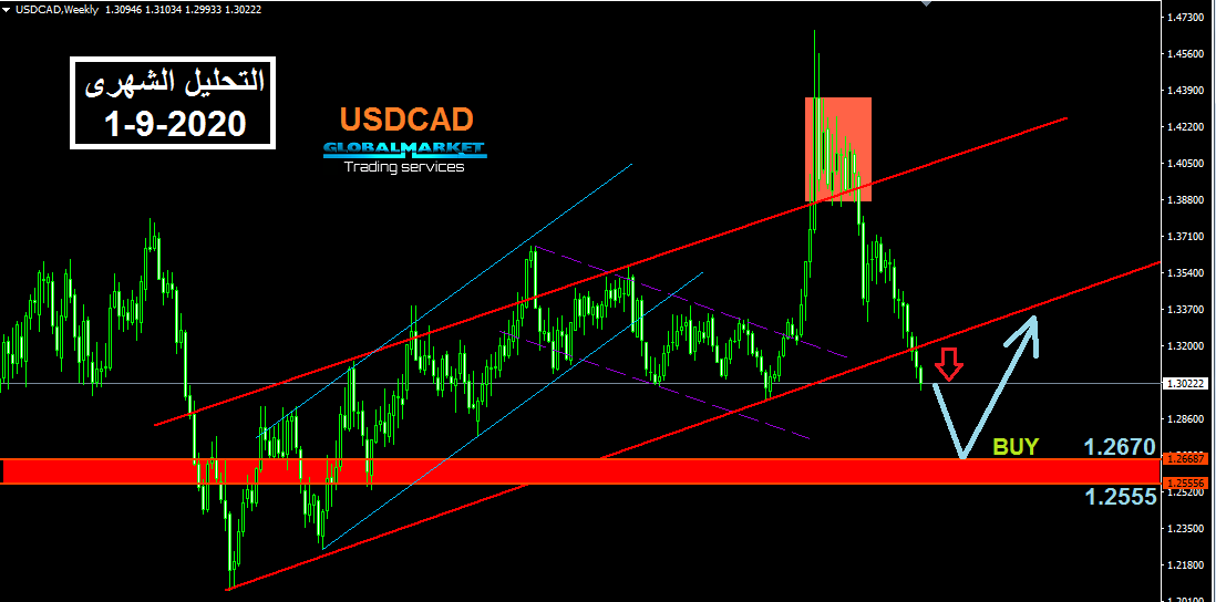 Monthly technical analysis of the USDCAD chart for September (9) 2020